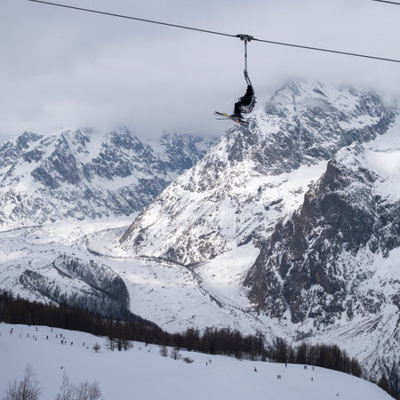 chair lift with Mont Blanc massif on background