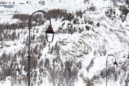 street lamps on a winter cold landscape