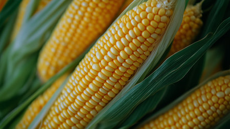 Golden Corn on the Cob with Fresh Green Husks Detail