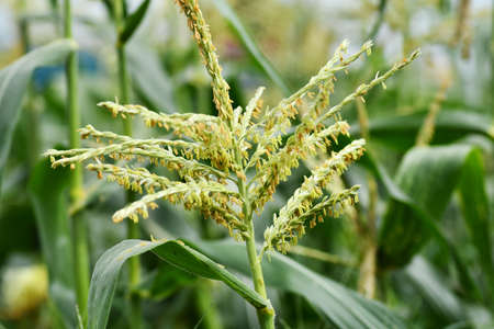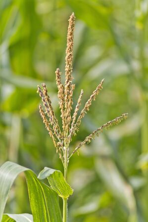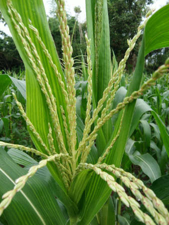 Inflorescences on the top of the corn plant, called the tassel. inner cornfield