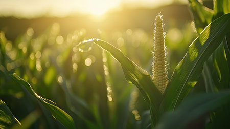 young corn on a stalk on a beautiful background