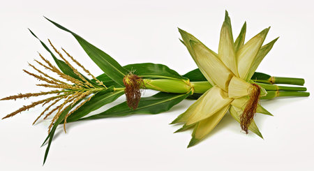Corn flower and corn leaves isolated on white background with clipping path.