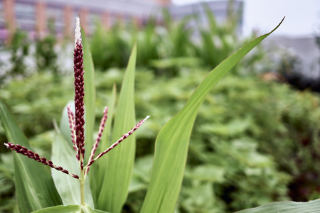 A close up of the blooming plant of maize.