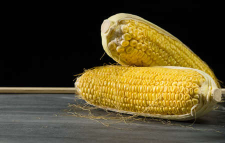 This photo of young sweet corn in yellow on a black background was taken from a close-up, wadaslintang, Indonesia