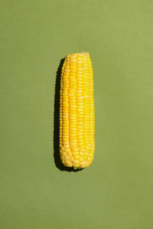 Top view of one corn on yellow background.