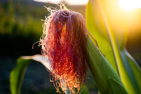 close up on maize at sunset