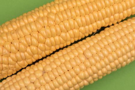 Ripe corn on yellow background.