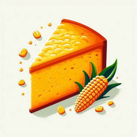 Illustration of a piece of cheese and corn on a white background