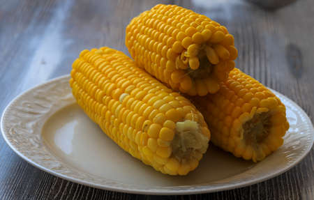 Boiled corn on a white plate
