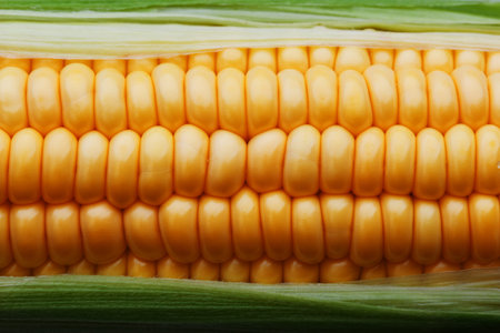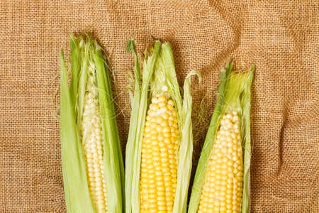 fresh sweet organic corn cobs close-up background