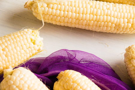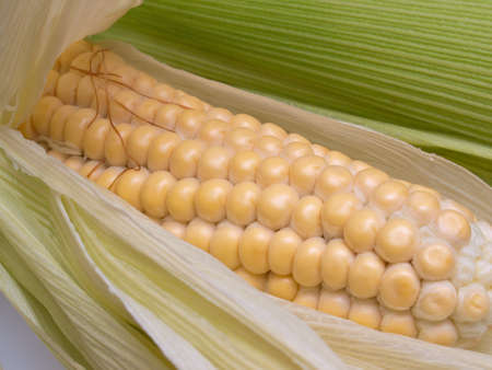peeled corn on the natural whit leaf