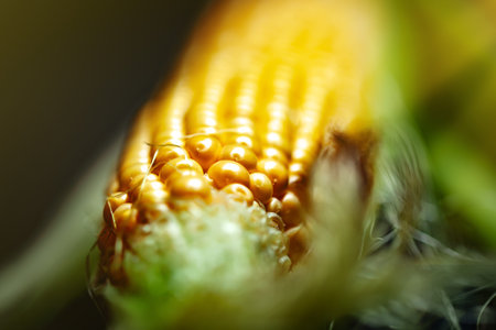 raw corn cob macro selective focus