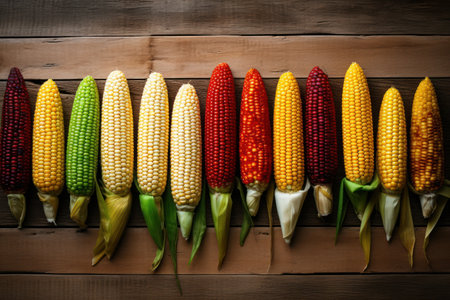 Various Colorful Corns on Rustic Background AI Generated