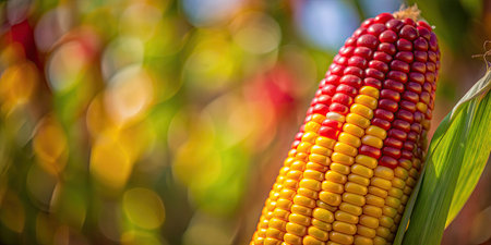 Grains of ripe corn. Colorful ripe raw corn ears, autumn harvest, AI Generated