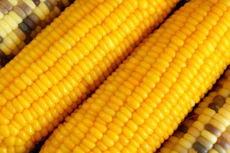fresh sweet organic corn cobs close-up background