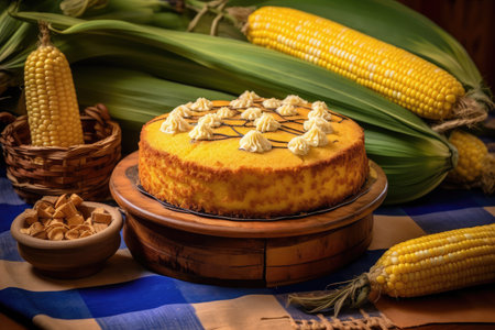 Corn cake. Traditional Brazilian typical sweets made from corn. Generative AI