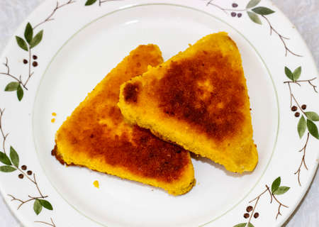 Slices of corn bread on a plate served as an appetizer
