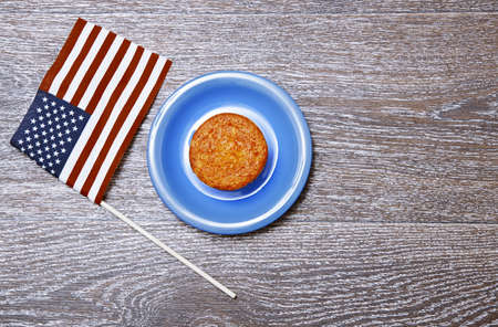 US flag and festive cake on a plate
