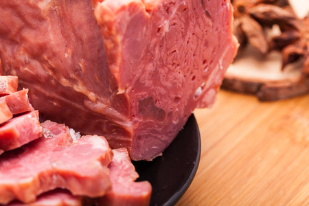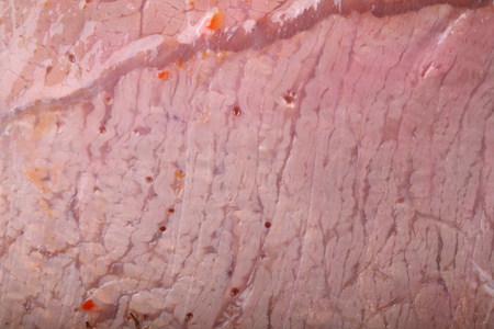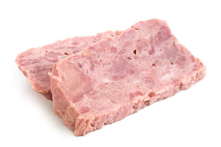 Spiced ham slices, canned meat for lunch sandwiches. Spiced ham as a food backdrop for your design.