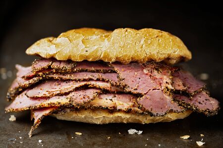 Famous Corned Beef and Pastrami on rye sandwich served in New York Deli