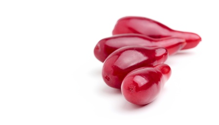 Dogwood berries on a white background. red berries. Useful fruit. Health food. Tartberry, ingredient for compote. dogwood isolate
