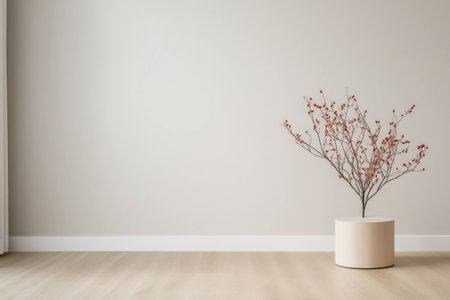 Minimalist interior design featuring a stylish plant centerpiece against a neutral wall, creating a serene and calming atmosphere for modern decor enthusiasts
