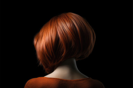 Short Auburn Straight Hair , Rear View On Black Background