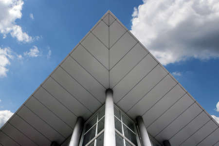 modern stainless steel roof outside office with sky