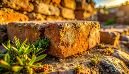 In the warm glow of a setting sun, a weathered old brick provides a foundation for new green life.