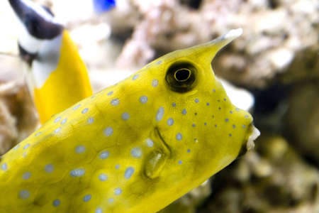 Tropical fish with horns in the ocean. Scuba diving and environmental observation.