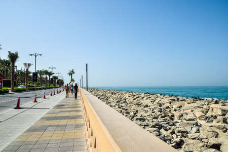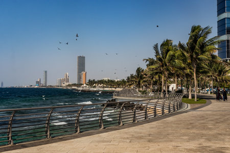 JEDDAH, SAUDI ARABIA - NOVEMBER 16, 2021: View of corniche promenade in Jeddah, Saudi Arabia