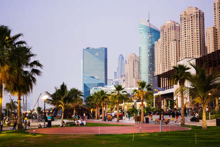 Dubai, United Arab Emirates - March 8, 2018: JBR, Jumeirah Beach Resort promenade, a new tourist attraction and residential area in Dubai, United Arab Emirates