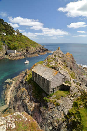Port Isaac, Cornwall, UK - April 8th 2017: View across the harbour to a large private residence