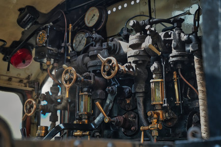 Steam engine control panel showcases vintage engineering details in an old locomotive