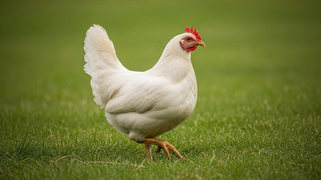 White Cage-Free Chicken Grass-Fed eating grass from ground
