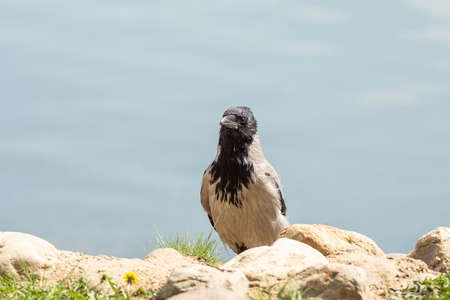 Gray crow, Corvus cornix, on the shores of Lake Skadar in Montenegro.