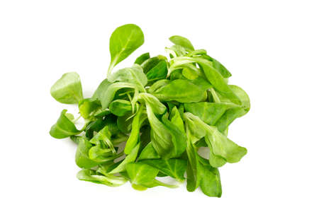 Fresh lamb lettuce, corn salad leaves isolated on white background