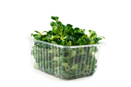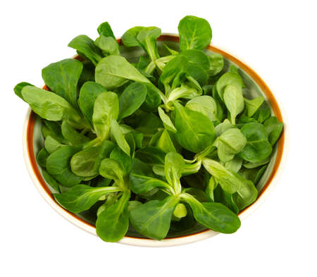 Valerianella locusta,corn salad,lamb's lettuce isolated on white background
