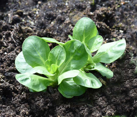 Corn Salad, Field salad, Lambs Lettuce (Valerianella locusta) in the garden, ready to cut. Close up,