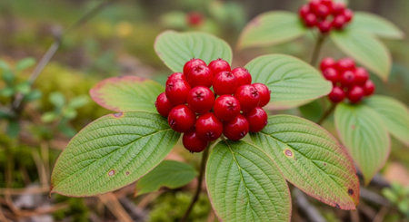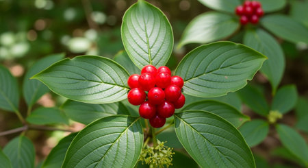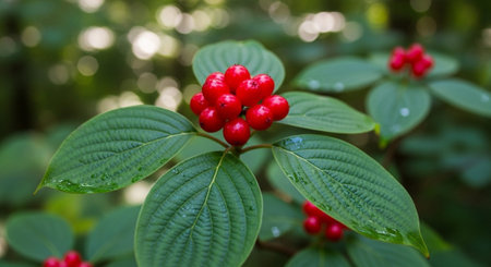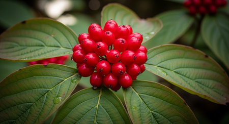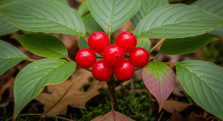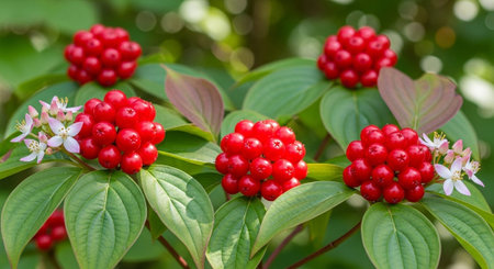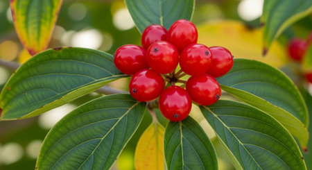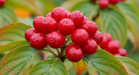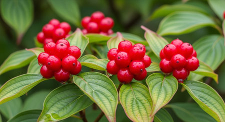 Red berries of cornel or dogwood