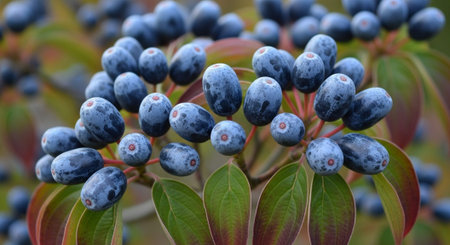 different fresh berries as background. blueberry and dogwood