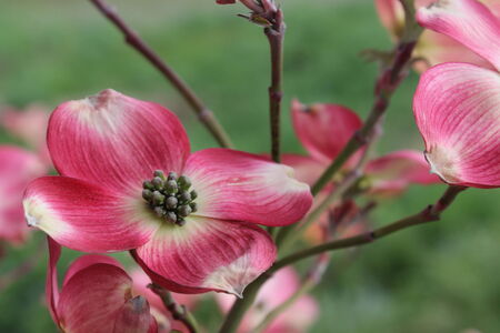 Flowering dogwood ( Cornus florida ) Flowers. A Cornaceae deciduous tree native to North America. White and pink flowers bloom in early summer.