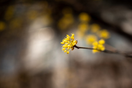 Cornelian cherry on a twigs with natural background