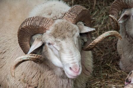View of domestic goat, a subspecies of C. aegagrus domesticated from the wild goat of Southwest Asia and Eastern Europe. The goat is a member of the animal family Bovidae and the subfamily Caprinae