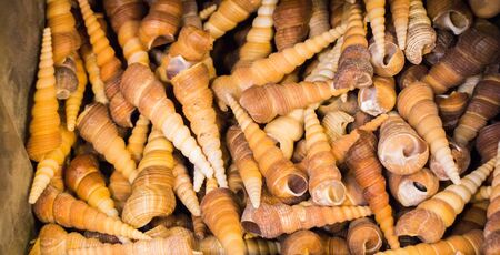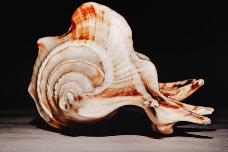 Old weathered conch shell background. Tropical sea conch wallpaper