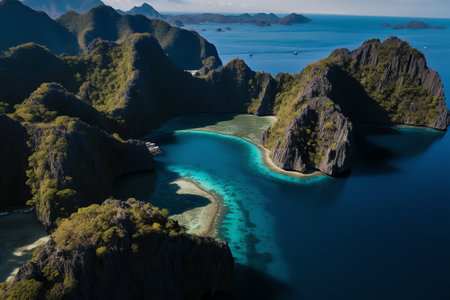 Generative AI : Aerial view of Coron Island Bayan ng Coron Palawan Philippines