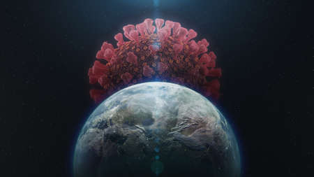 3D illustration of Coronavirus infection is attacking the planet Earth. World Covid Epidemic.