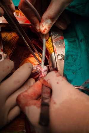 Cardiac surgery with cardiopulmonary bypass. Image with shallow DOF.