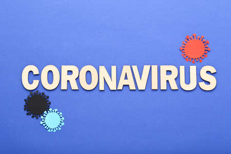 Text Coronavirus on blue background