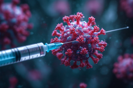 Vaccination preparation concept background with coronavirus covid vaccines and medical syringe